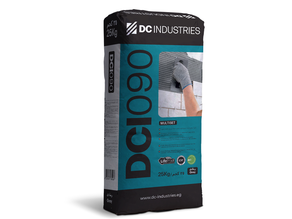 دي سي اي 090 ملتي سيت عبارة عن مادة لاصقة عادية تعتمد على الأسمنت وتتميز بسهولة التشغيل ومدة عمل طويلة، وهي مصممة للاستخدام في التطبيقات الداخلية ذات الطبقات الرقيقة، وهي ممزوجة إما بالماء أو بمزيج من مادة اللاتكس.دي سي اي 090 ملتي سيت عبارة عن مادة لاصقة أسمنتية (C) عادية (1) ومقاومة للانزلاق (T) من فئة C1T.دي سي اي 090 ملتي سيت عبارة عن مسحوق رمادي أو أبيض اللون مصنوع من الأسمنت والرمل المصنف المختار والراتنج الصناعي والمواد المضافة الخاصة التي يمكن استخدامها على الجدران والأرضيات لتركيبات الطبقات الرقيقة من البلاط والمواد