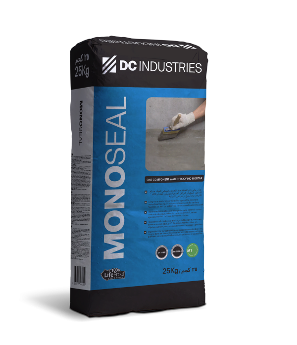 Monoseal عبارة عن غشاء مقاوم للماء مكون من مكون واحد يعتمد على مواد رابطة أسمنتية ومواد خاملة دقيقة الحبيبات ومضافات بوليمر أكريليك خاصة عالية المرونة. عند مزجه بالماء، فإنه يشكل ملاطًا ذو قابلية تشغيل ممتازة يسهل تطبيقه باستخدام مجرفة أو بكرة أو فرشاة، ويمكن أيضًا تطبيقه على الأسطح الرأسية دون انزلاق. يلتصق Monoseal بشكل جيد للغاية بجميع الأسطح في الخرسانة والبناء والسيراميك والرخام، إذا كانت مستقرة ميكانيكيًا ونظيفة.